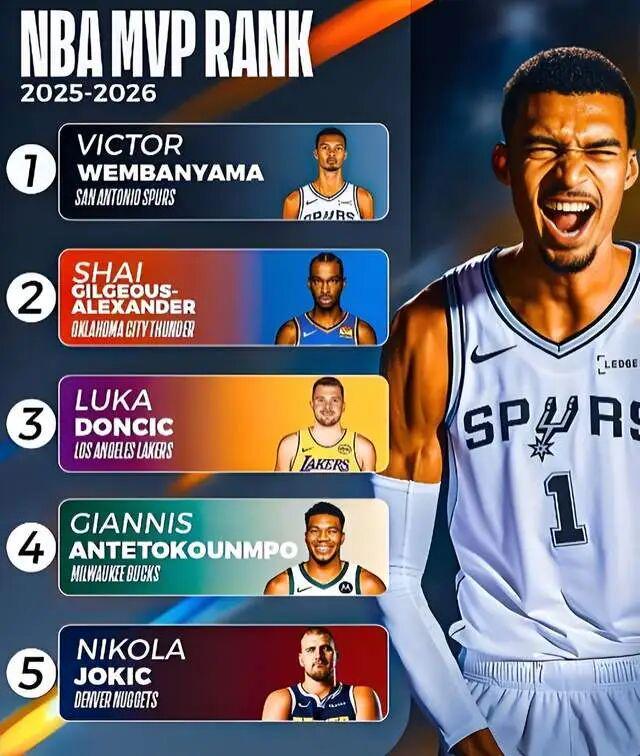 今日,最新一期MVP榜单公布:前五人分别是:亚历山大、文班亚马、约基奇、东契奇、坎宁安;而第六到第十则是米切尔、杰伦·布朗、爱德华兹、伦纳德、杰伦·约翰逊。表面一看和之前的榜单情况差不多,依旧是那些熟面孔。但仔细一看,你就会发现一个变化之处:之前一直稳居前二的约基奇,已经被挤到了第三;而实现反超的,来自于文班亚马。这个变动还是值得关注的,对于约基奇这位三届M...